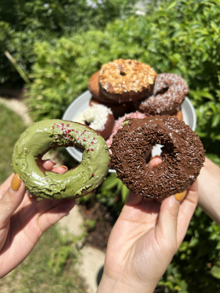 ドーナツはプレーンやシュガーに加えてきなこ、チョコクランチ、抹茶、キャラメルナッツと様々。