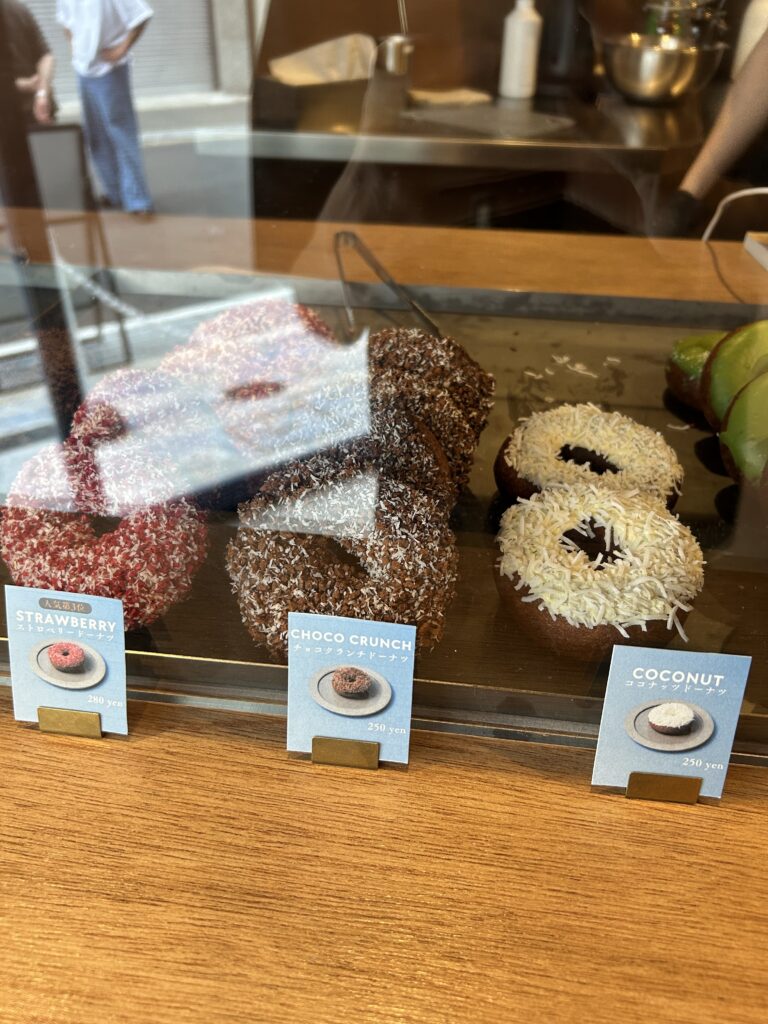 ショーケース内にはシンプルなものからコーティングしたものまで様々なドーナツが陳列。