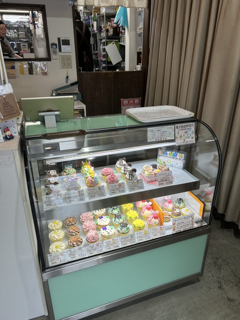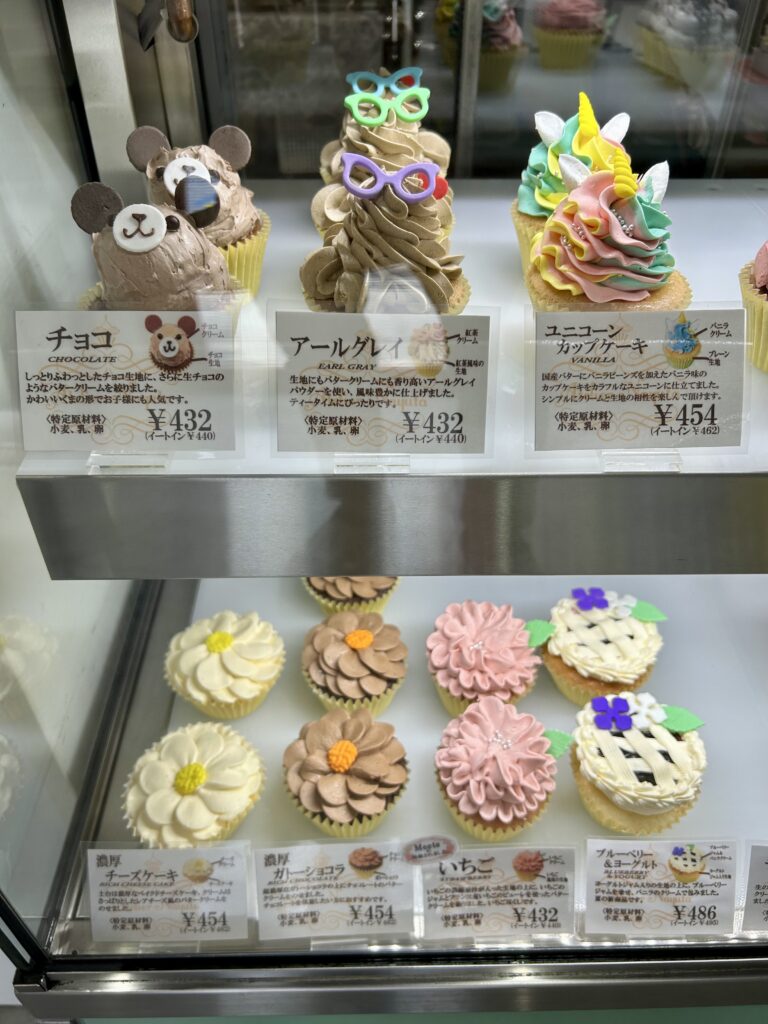 一階はテイクアウトブースになっていて冷蔵ケースの中にはカラフルなカップケーキが並んでいました。