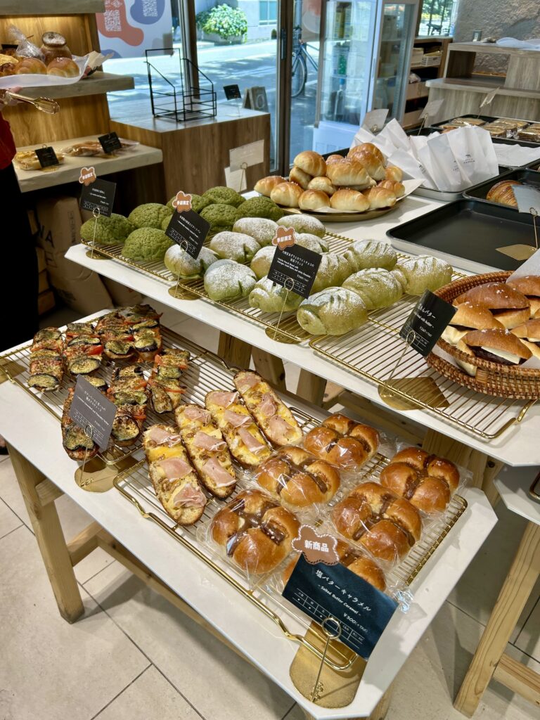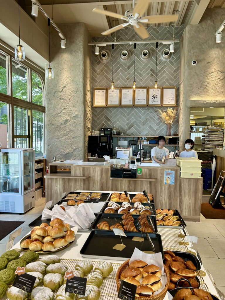 一階はベーカリーとなっていて数量限定濃厚バターのクロワッサンや︎自家製なめらかカスタードのクリームパンなどの甘い系や総菜系と様々なパンが並んでいおり、出来立てゴールデンタイムは10:00〜11:00頃みたいです。