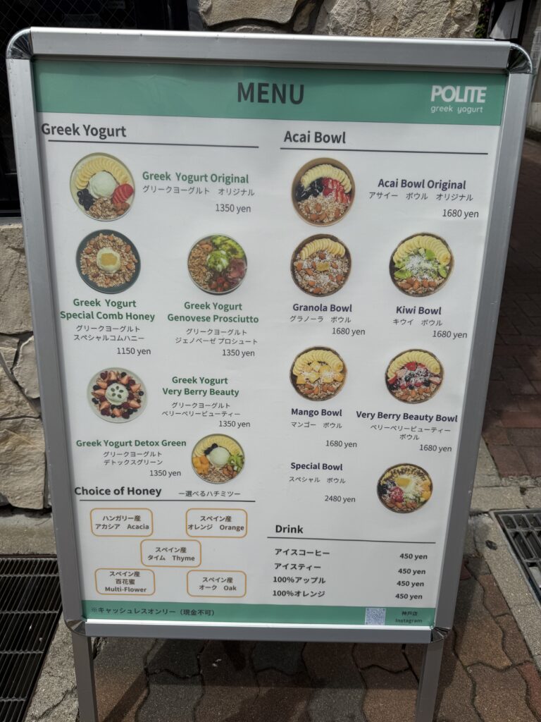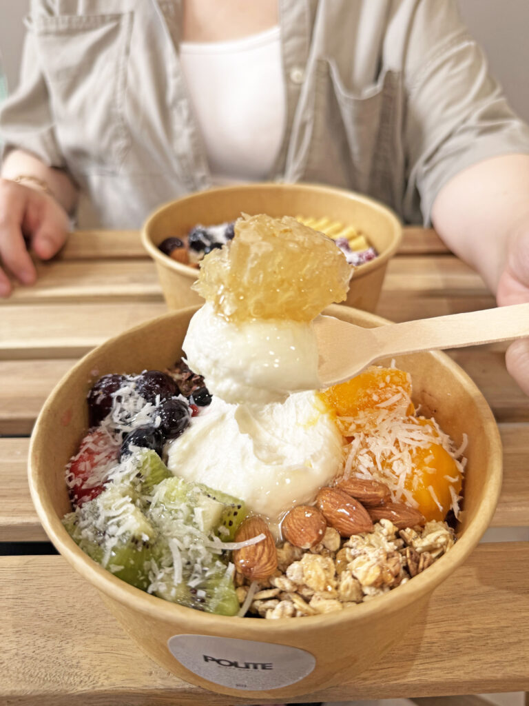 「POLITE cafe(ポライトカフェ)神戸店」さんは2025年6月オープンの『砂糖不使用』、『グルテンフリー』、『パーソナルジム監修』のアサイーボウルとグリークヨーグルトが楽しめるお店。