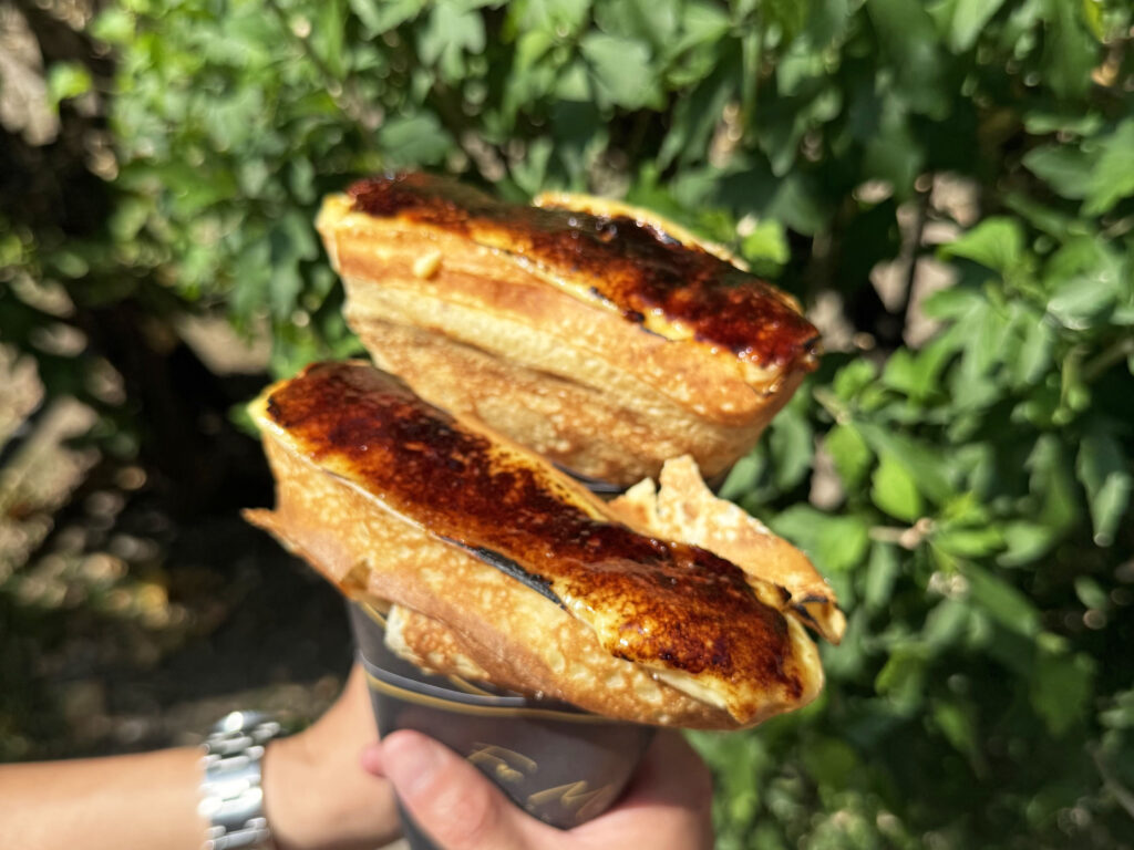 カスタードクリームの上に砂糖をまぶしブリュレした香ばしいクレープ。