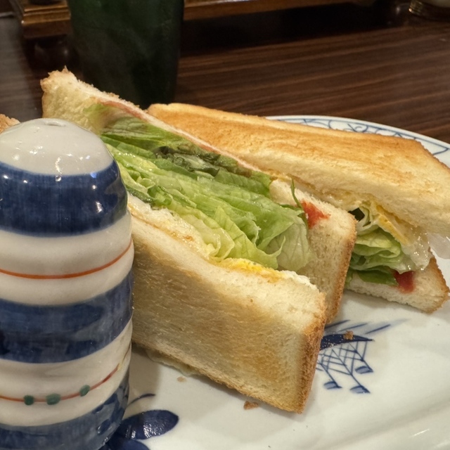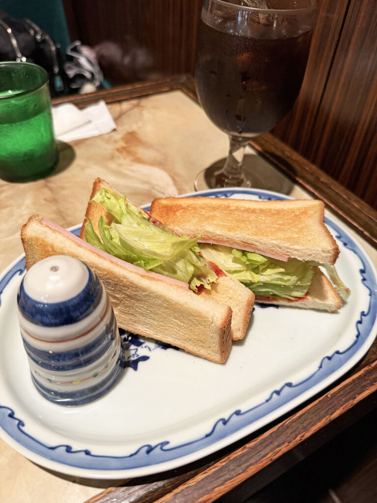 トーストは注文ごとに焼き上げられ、ほんのり温かく、中にはハムとレタスがマヨネーズとともにサンド。