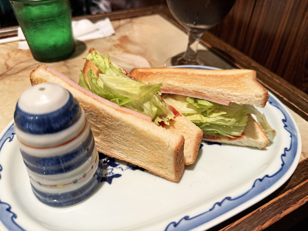 トーストは注文ごとに焼き上げられ、ほんのり温かく、中にはハムとレタスがマヨネーズとともにサンド。