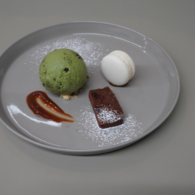 福岡県八女市の八女抹茶を使用し中にブラックカカオクッキーを混ぜ込んだ翡翠色をしたフレーバー。