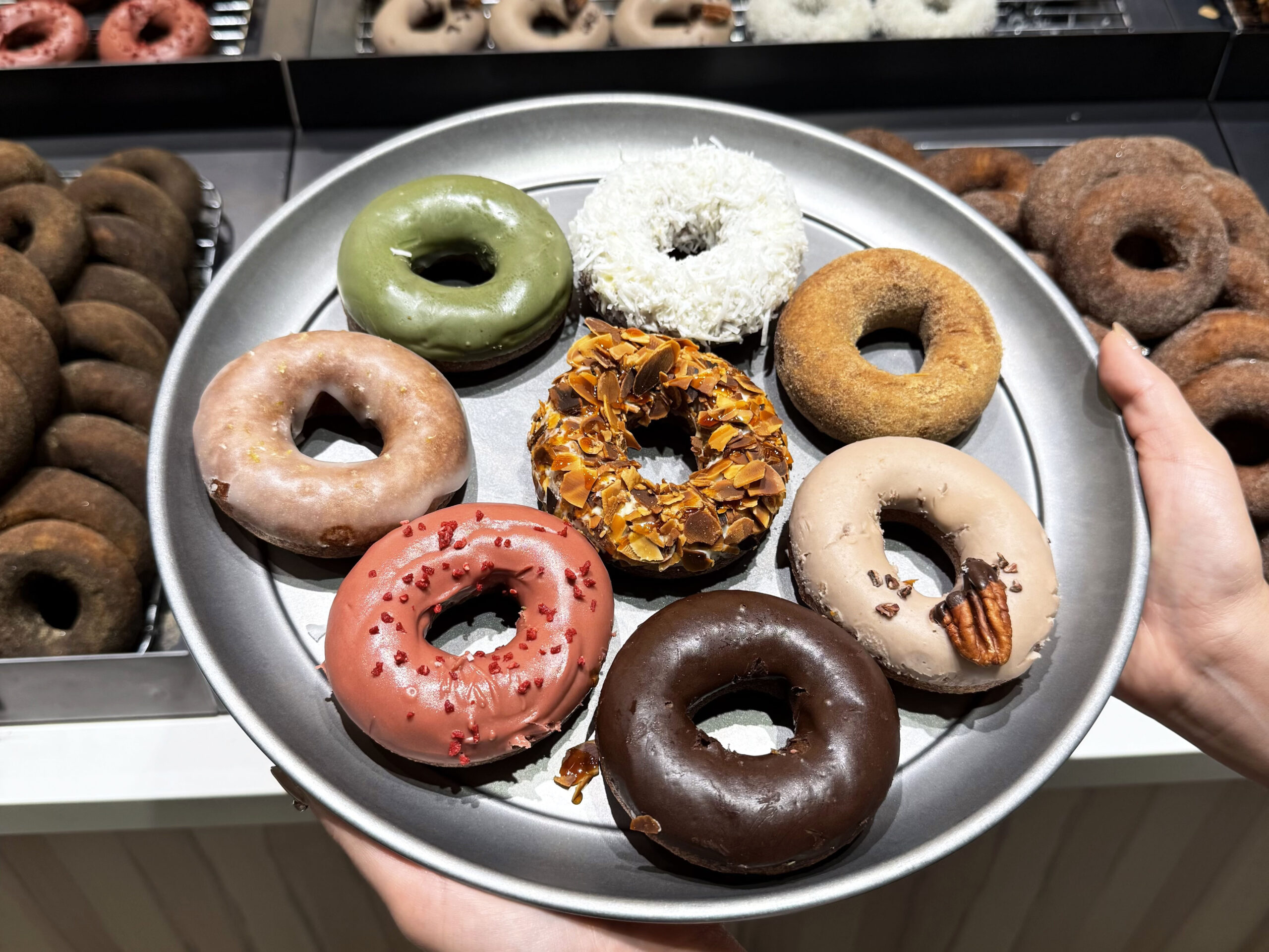 明るくスタイリッシュな店内で奥にはたくさんのドーナツが陳列。