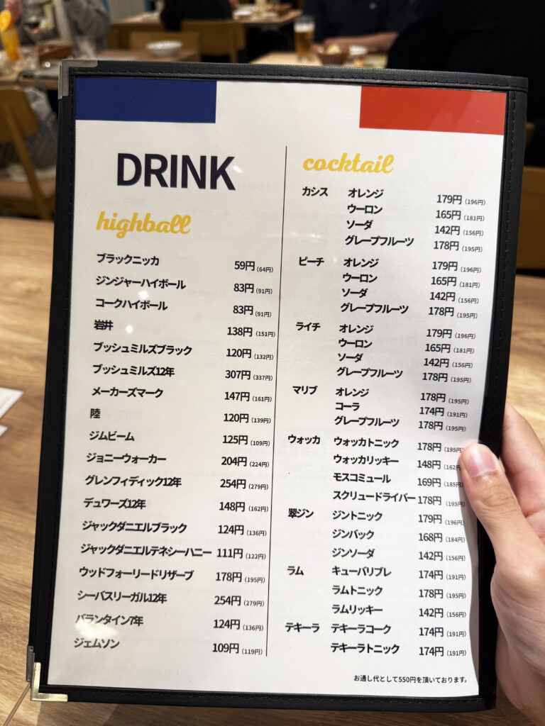 特筆すべきは『アルコール、ソフトドリンクがとても安い』ということ!