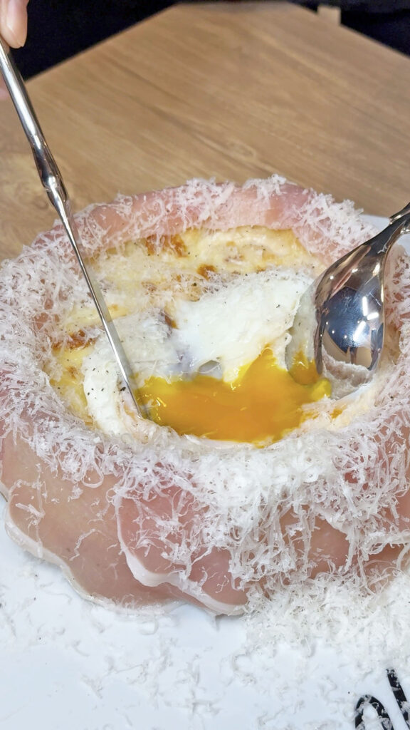 塩気とチーズのコク、濃厚な温玉の抜群のコンビネーション。