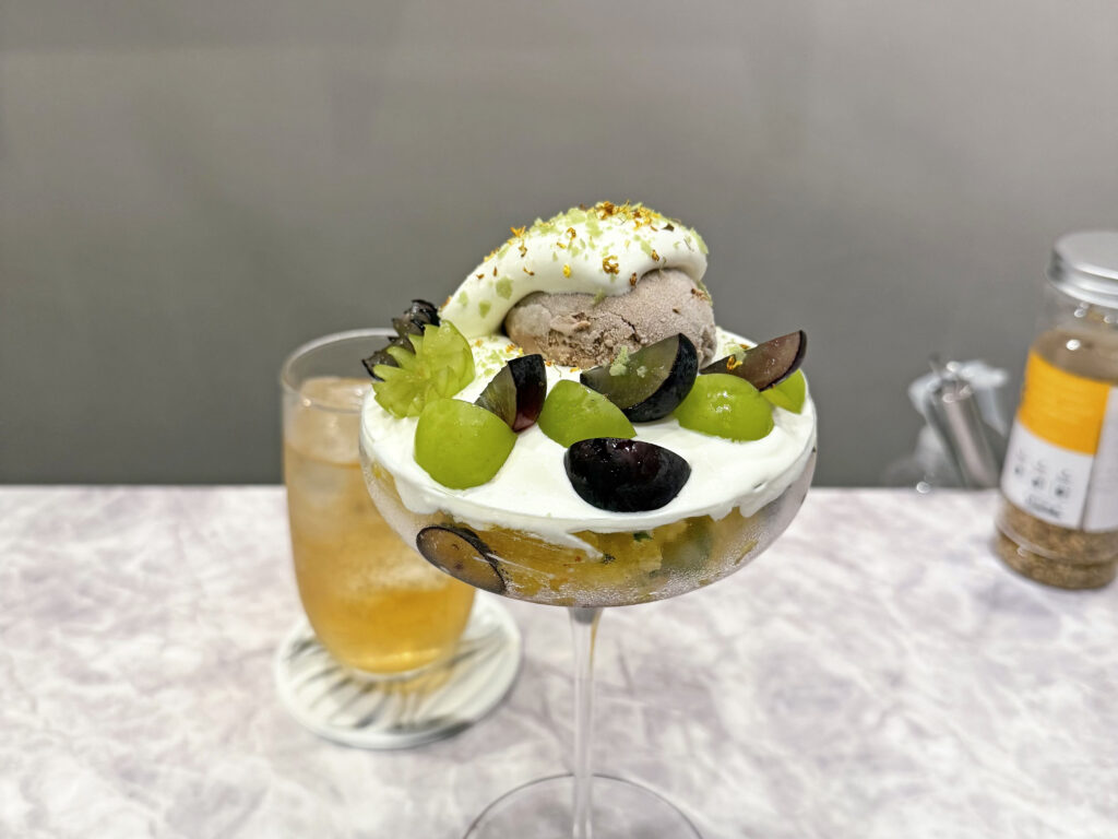 季節ごとに味が変わる甘さ控えめのパフェ、10月は葡萄です。