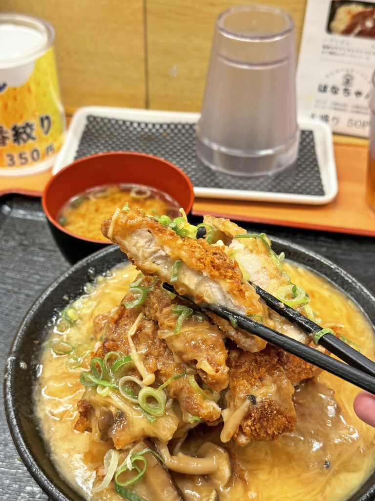 「どんぶり&ダイニング はなちゃん」さんは、天津飯の上にカツを数枚のせたインパクト抜群の丼などが食べられるお店。