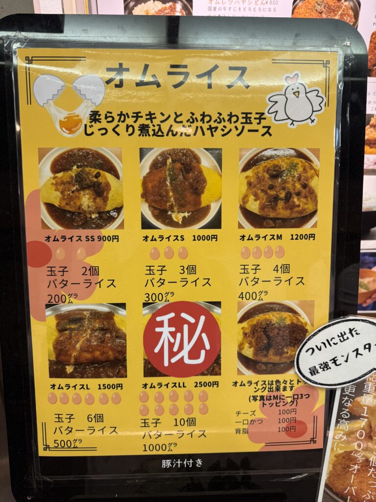 オムライスもよく注文されているみたいで、Sサイズが他店ではLサイズになります。