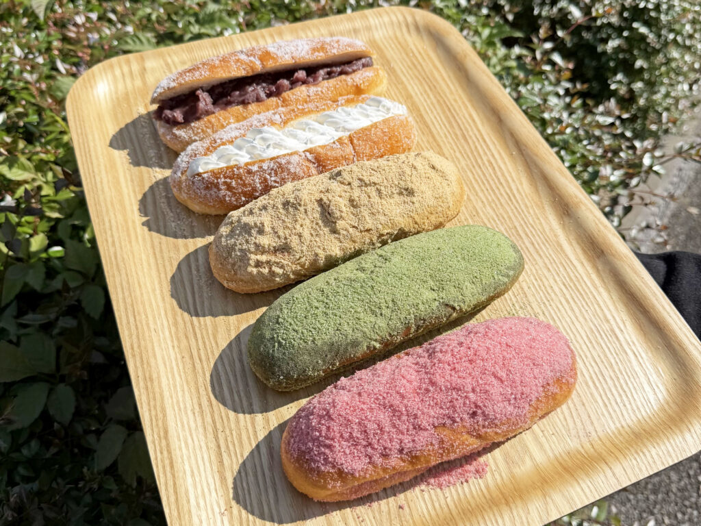 人気はきな粉、その他にシンプルなシュガーや伊勢抹茶という珍しい抹茶を使ったもの、いちごなどがありました。
