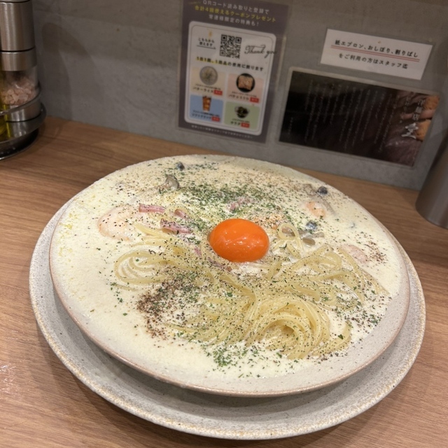 出汁や豆乳などの素材を活かしたスープにもちもち生パスタが重なり合い極上の味わいになっていました。