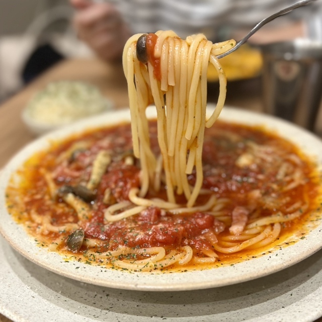 トマトの酸味をやわらげるように煮込まれていて和風の旨味をほんのりと感じられます。