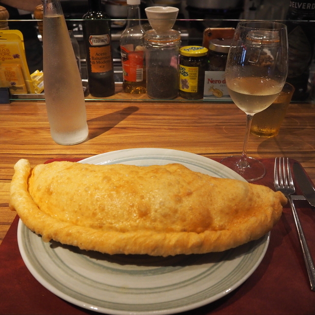 こちらは包み揚げピザで生地に具材をのせて折りたたみ、三日月型にして揚げたもの。