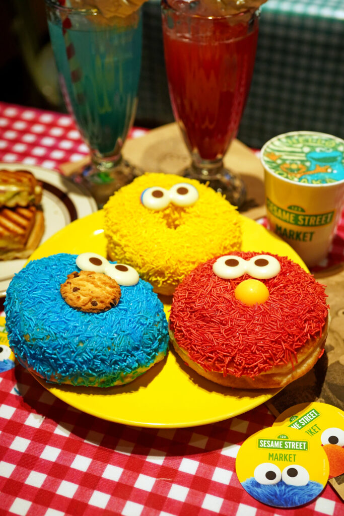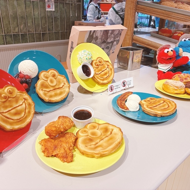 エルモ、クッキーモンスターの顔をモチーフにしたワッフル。