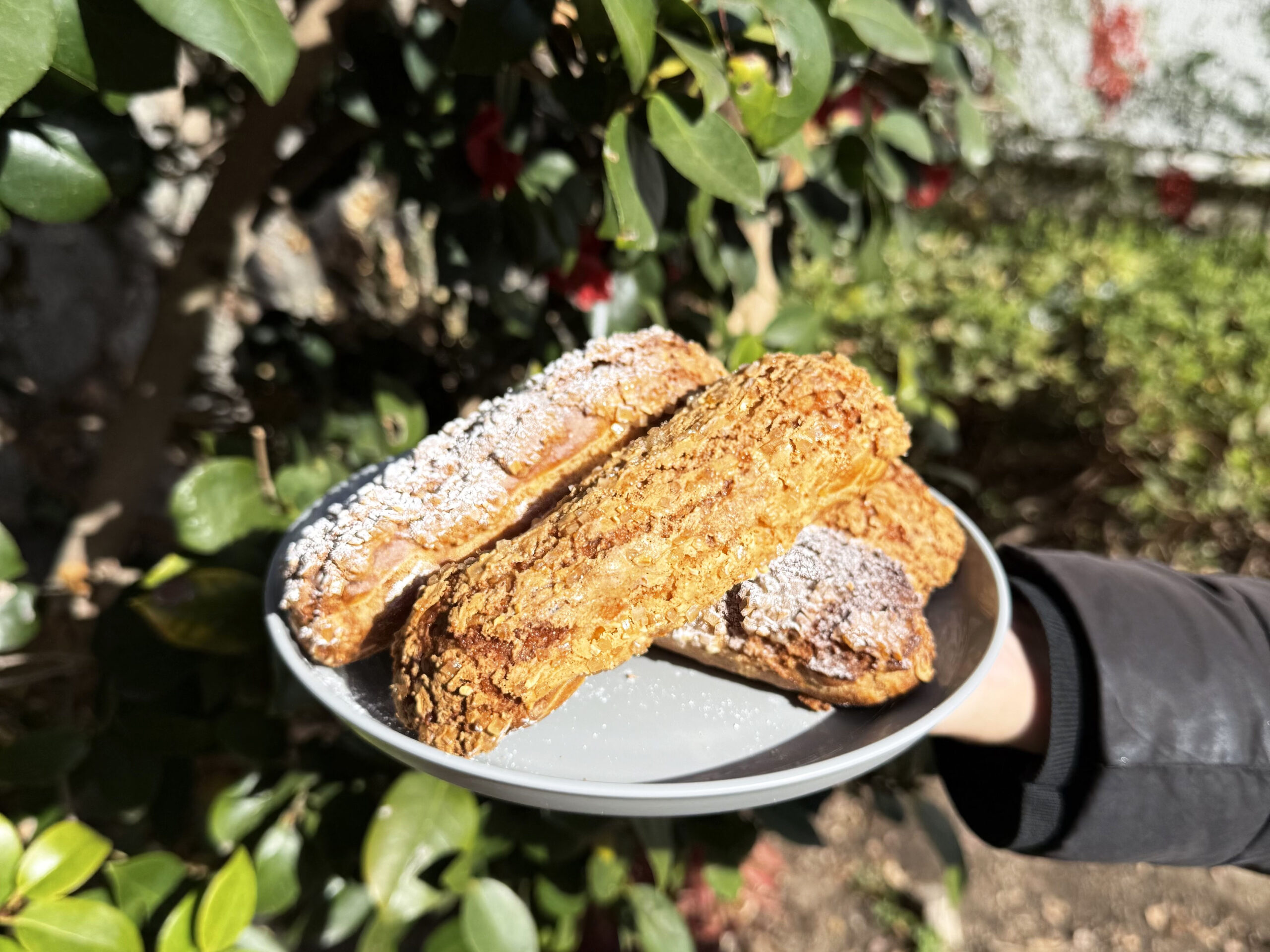 エクレアのような長細いシュークリームは食べ歩きにもピッタリです。