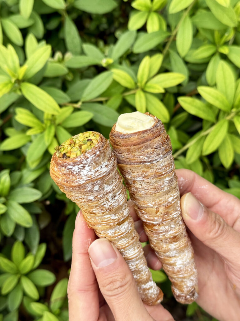 サクサクコルネの中にはナッティなピスタチオクリームやミルキーなミルククリームがたっぷりと入っていました。