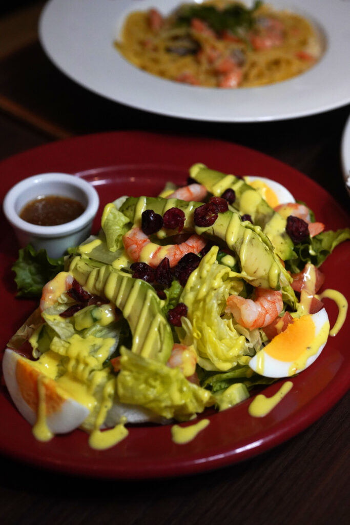 アクセントのクランベリーがぷりぷりのシュリンプやクリーミーなアボカドの美味しさを引き立ててくれるサラダです。