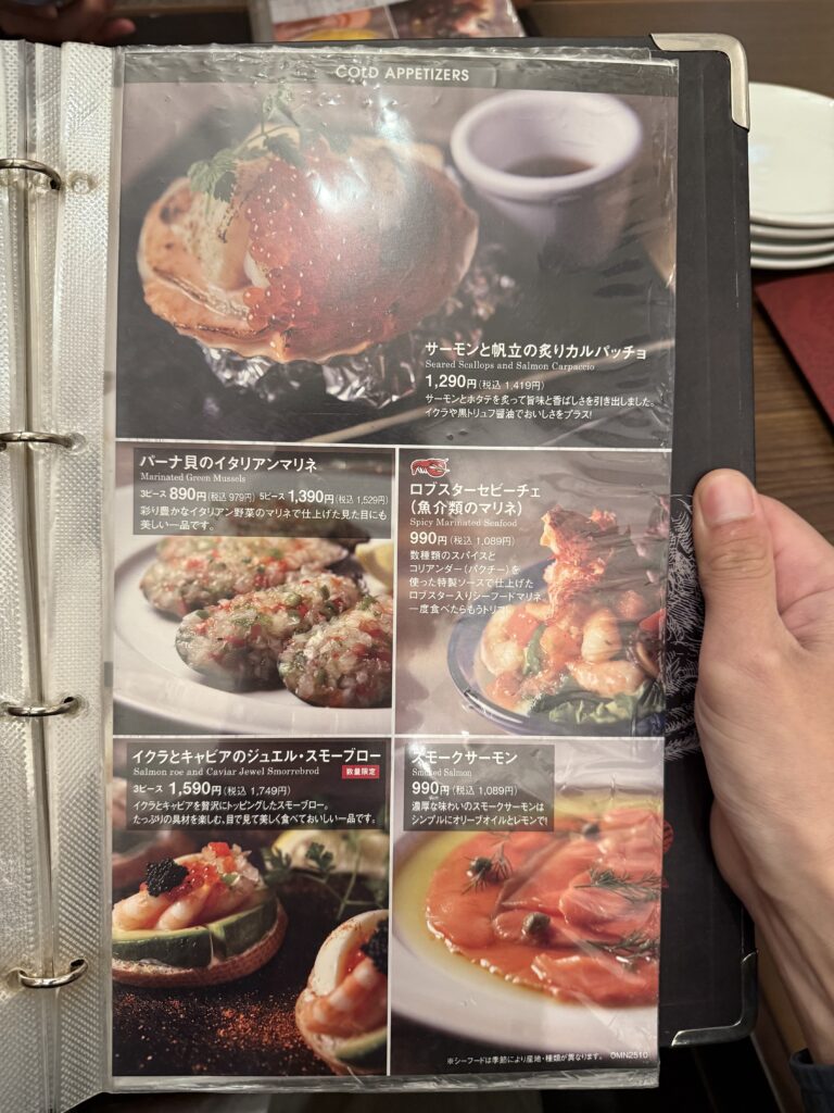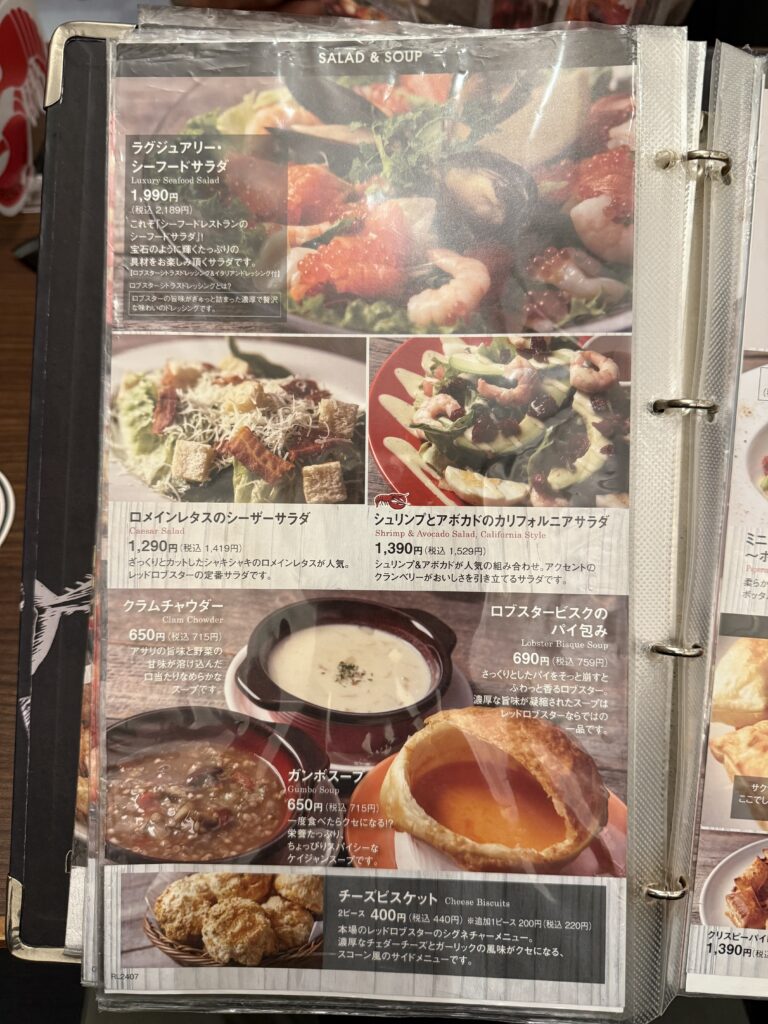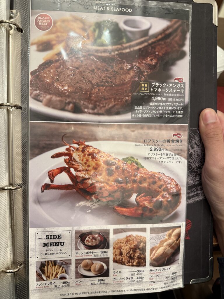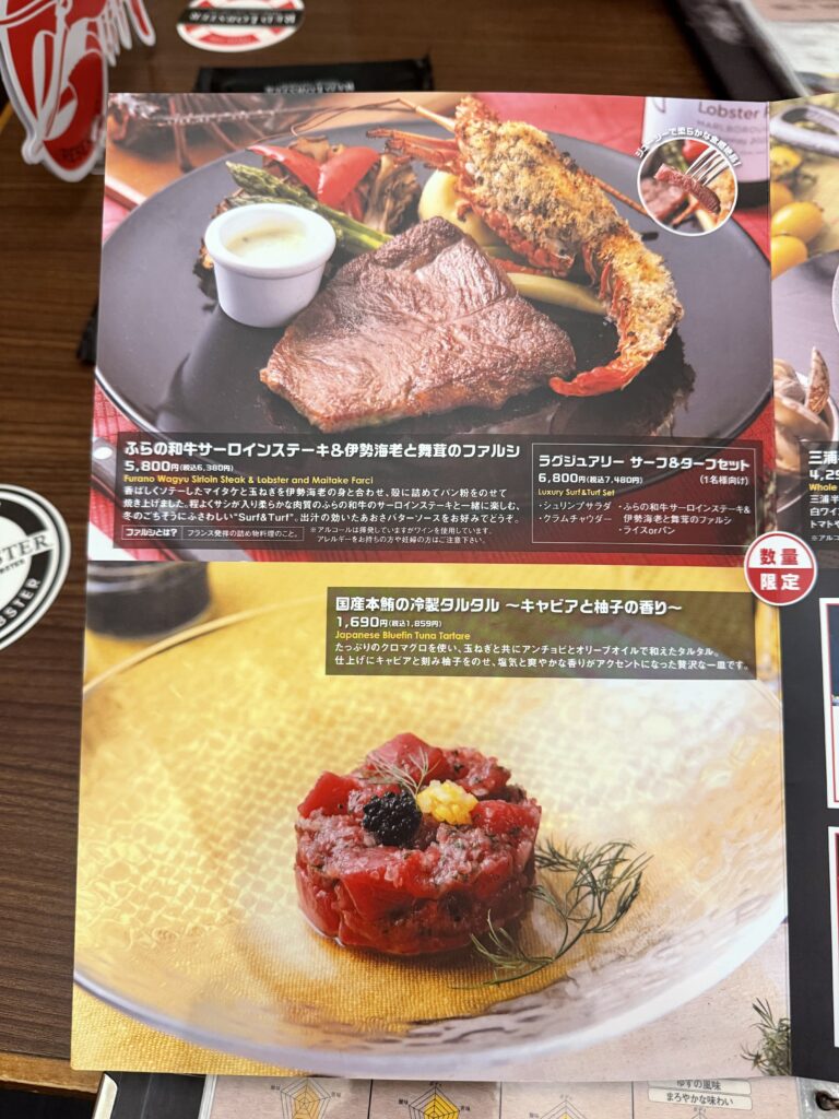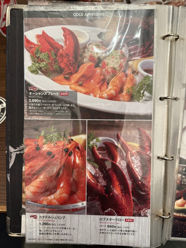 ロブスターにパスタ、ピザなどいろんなメニューが組み込まれています。
