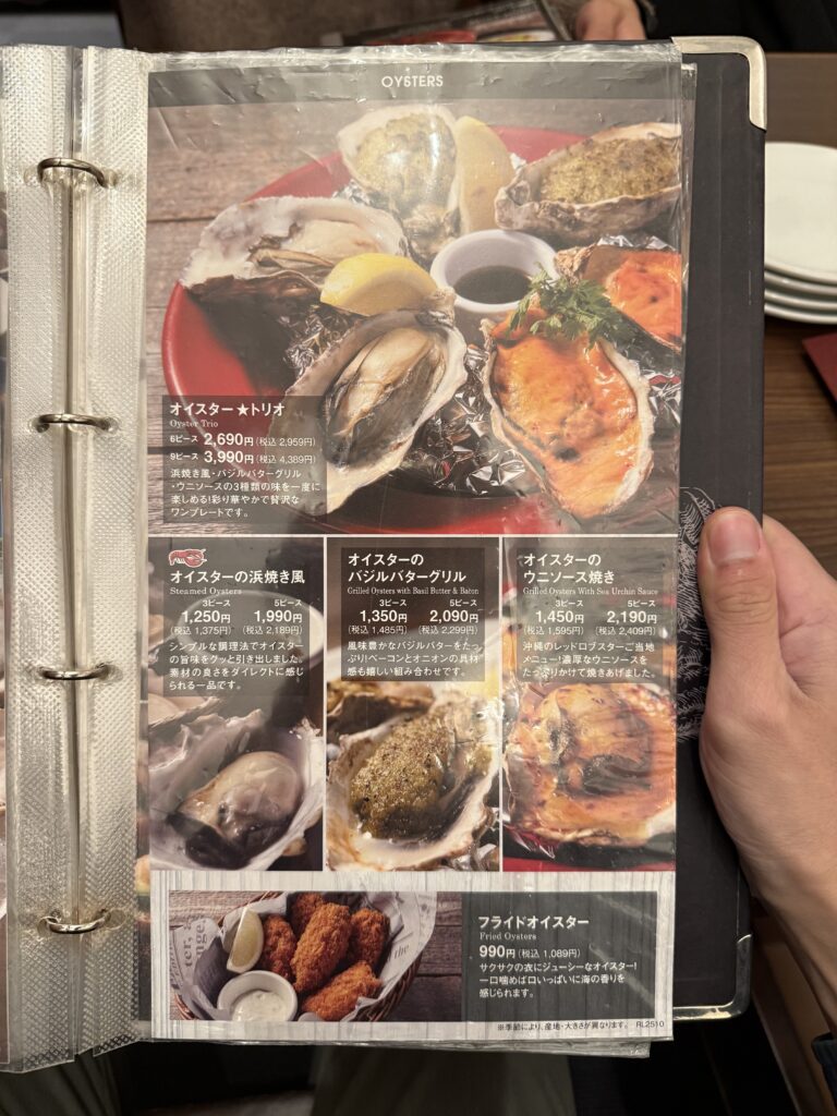 オイスターは様々な味のソースが楽しめるメニューにカキフライ。