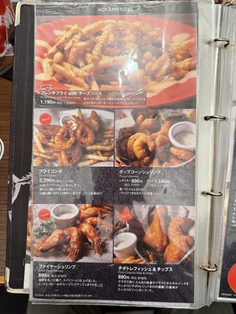 温かいメニューは、フレンチフライやポップコーンシュリンプやグラタンなどがありました。