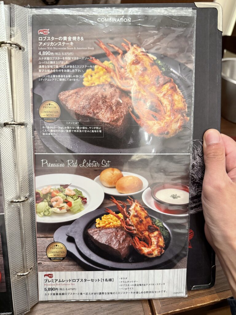 ロブスターにお肉やサラダを一緒に楽しめるコンビネーションメニュー。