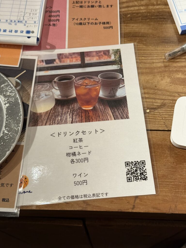 セットドリンクはコーヒー、紅茶、柑橘ネードから選べます。