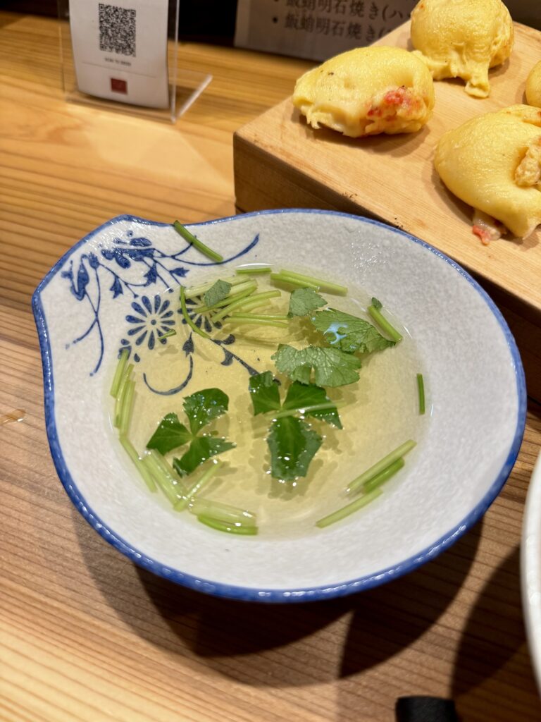 焼きたての明石焼きはふわふわで優しい出汁につけて頂きます。