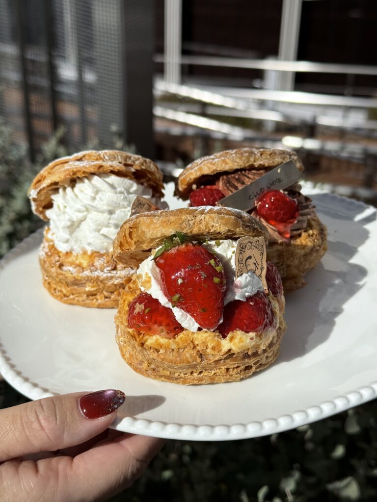 サクサクの香ばしいパイ生地に甘酸っぱいいちご、軽やかな生クリームそして濃厚なカスタードとバランスの良かったです。