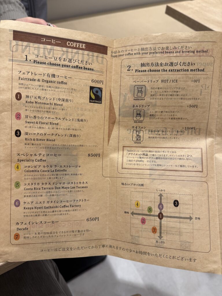 フェアトレード有機コーヒー(神戸元町ブレンド) 600円(税込)