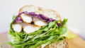 トーストした全粒粉のパンに、ハム、チーズそしてオムレツをサンド。