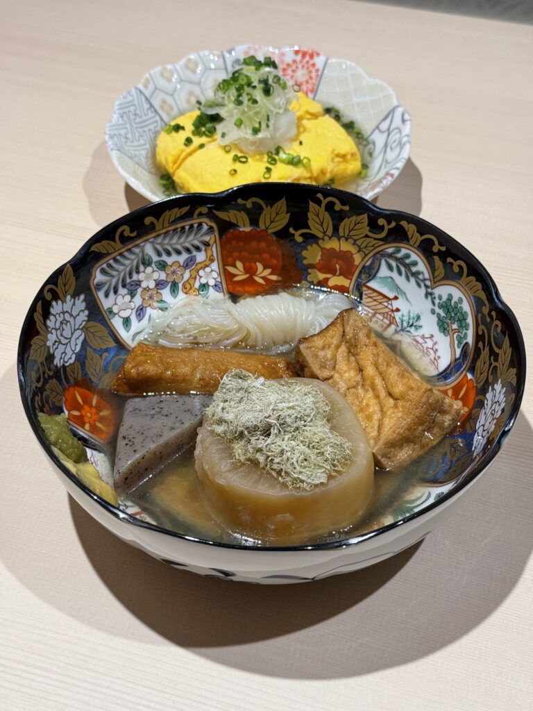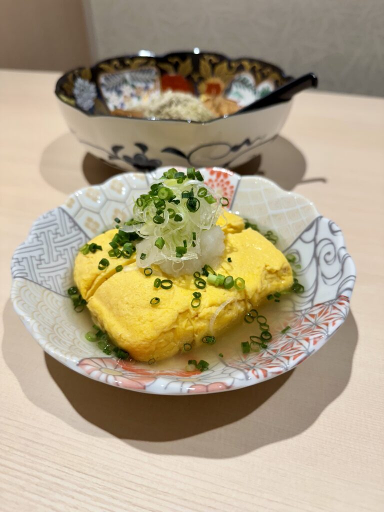 おでんの出汁を使っただし巻き、白髪ネギと大根おろしがさっぱりとした味わいを演出。