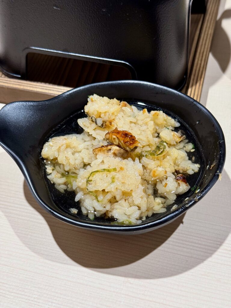 最後にはお通しの京出汁スープをかけて釜飯ひつまぶし風にして食べました。