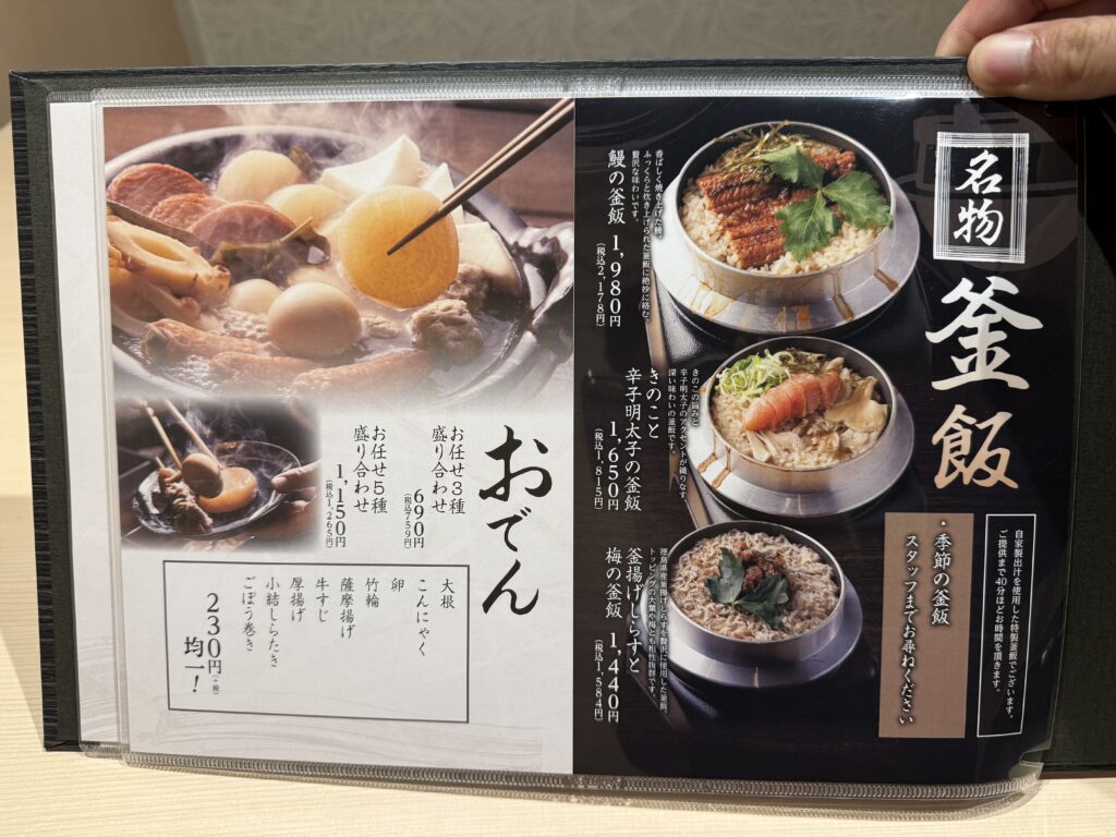 「釜飯と京出汁おでん だしのや 梅田本店」さんは2026年1月13日オープンの注文ごとに丁寧に炊き上げる釜飯と京出汁おでんが食べられるお店。