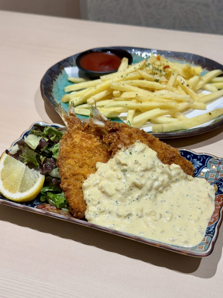 サクサクの衣に覆われた柔らかい鯵、タルタルソースをたっぷり添えられているのが嬉しい。