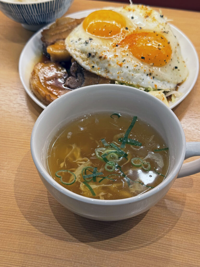 さらにおかわり自由のご飯と玉子スープがついていました。