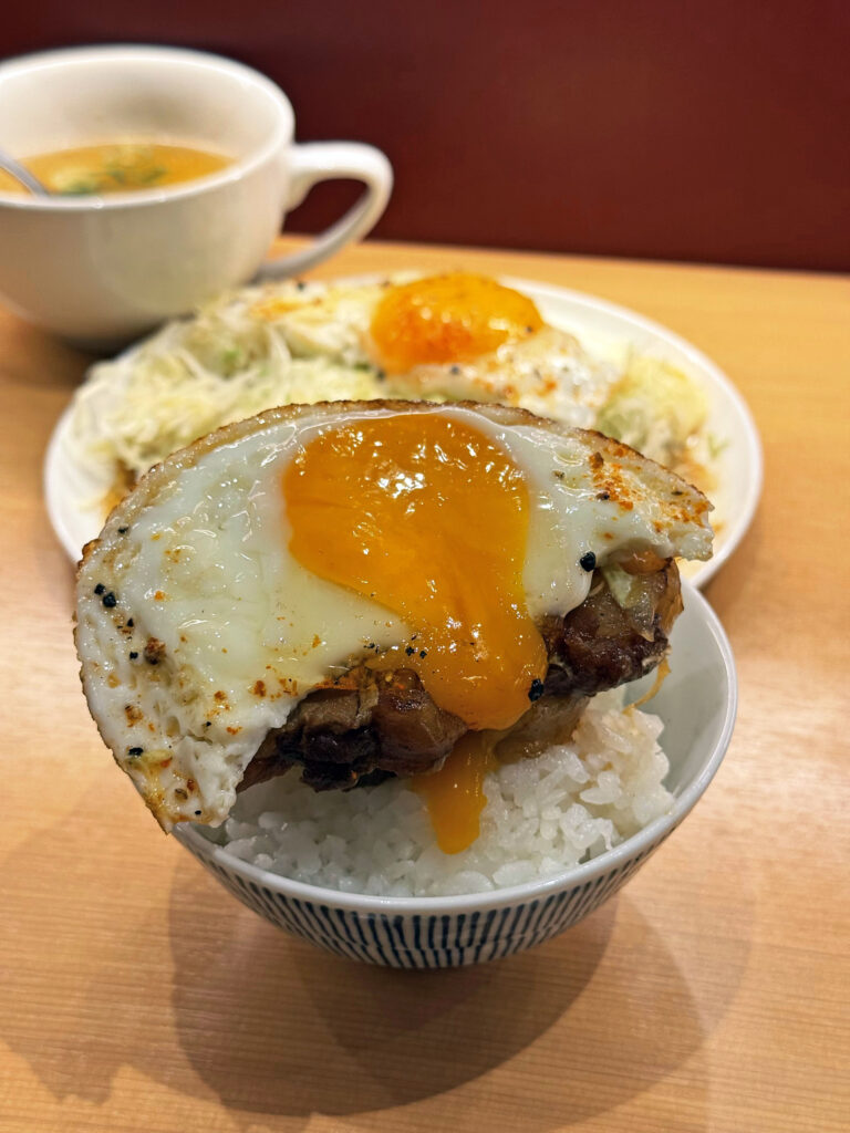 さらに目玉焼きを乗せて食べるとこれはもう最高です!