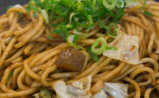 牛すじ肉とこんにゃくを甘辛く炊き込んだぼっかけと香ばしいソースが麺に絡み合い、染み込んだ甘味が調和してついつい箸が止まらない。