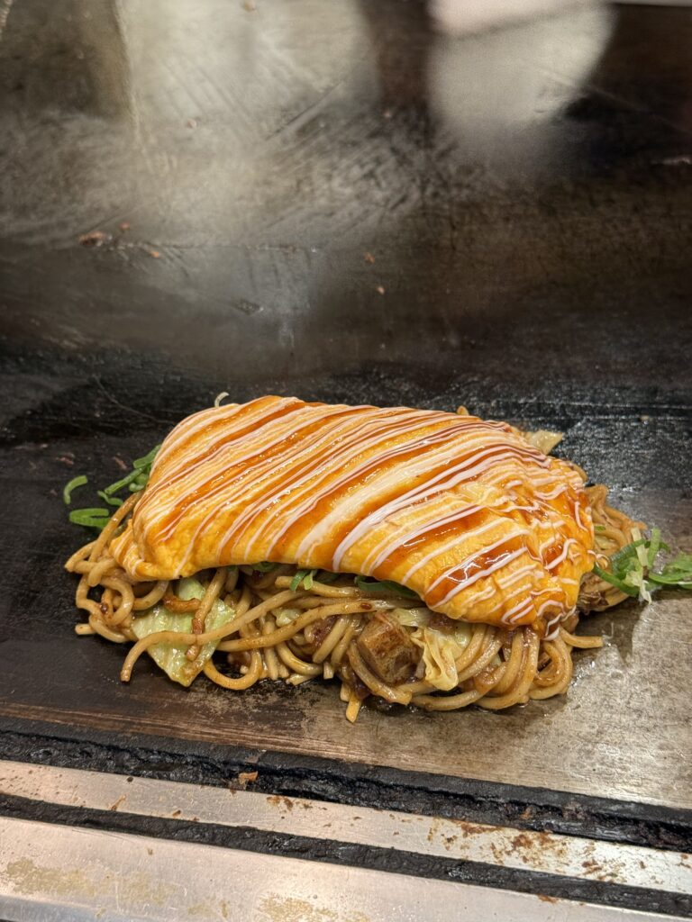 焼きそばがたっぷりと入ったモダン焼きに目玉焼きとこちらもボリューミーでした。