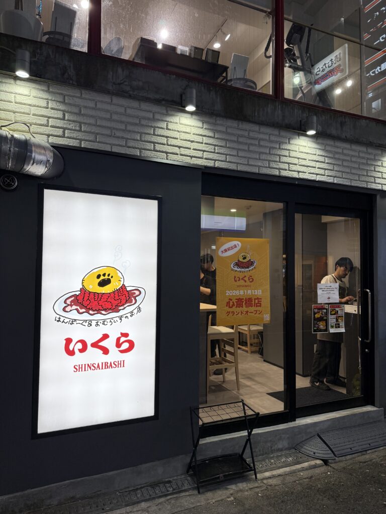 「はんばーぐ&おむらいすのお店 いくら心斎橋店」さんは2026年1月13日にオープンした東京や福岡で人気のハンバーグオムライス、オムバーグが食べられるお店。