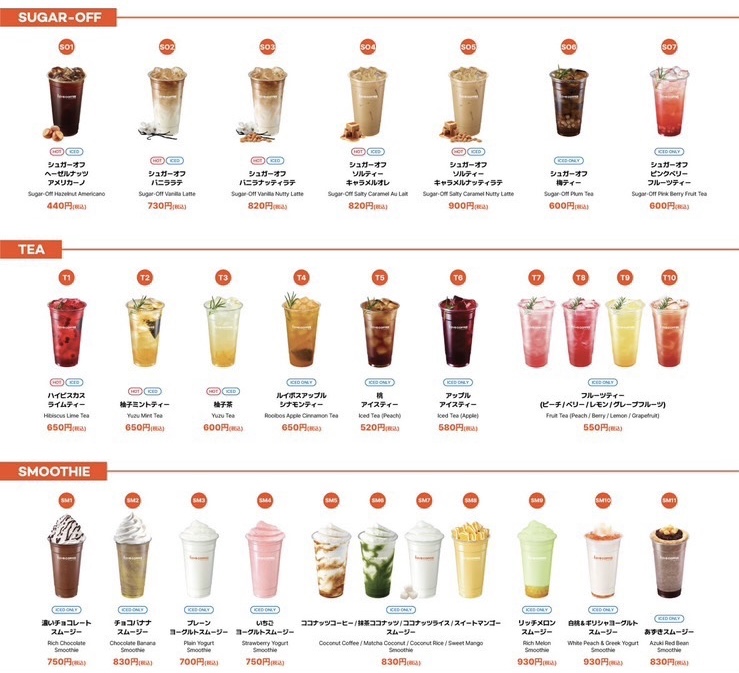 コーヒー以外には様々なフルーツティーに柚子茶やアップルアイスティー、ハイビスカスライムティーなどのティーもあります。
