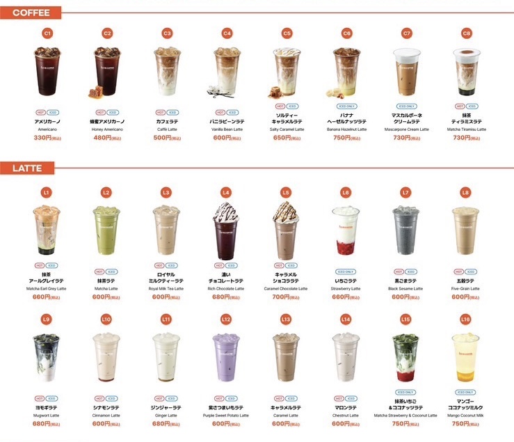 グレートアメリカーノを始め、カフェラテ、ミルクティーラテ、抹茶ラテなどのエスプレッソ。