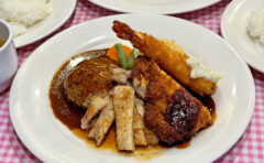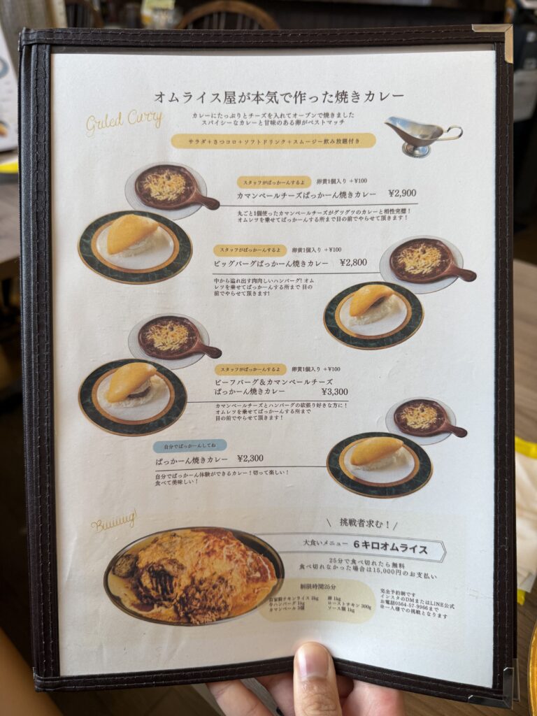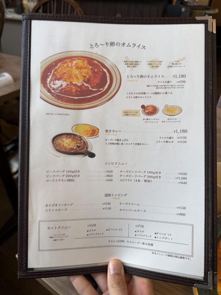 カマンベールチーズやビーフバーグをトッピングしたオムライスに、その両方を乗せた贅沢なオムライスもありました。