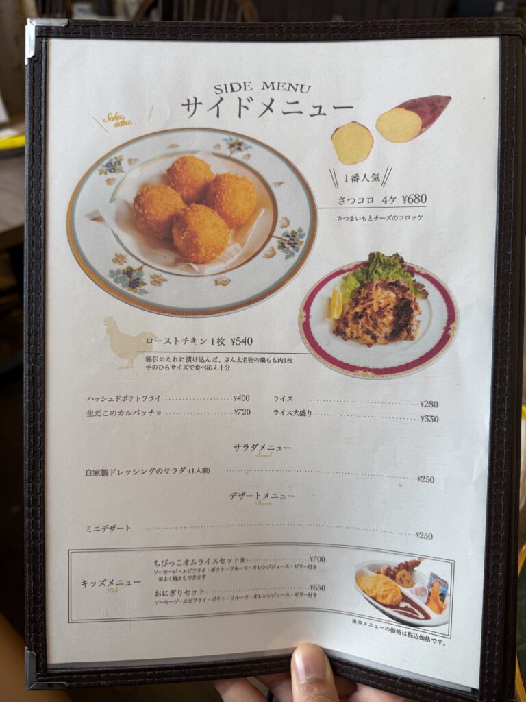 看板メニューのぱっかーんオムライスは、1,000回以上の試作を繰り返して生まれたそうで誰が切っても「ぱっかーん」と切れるそうです。
