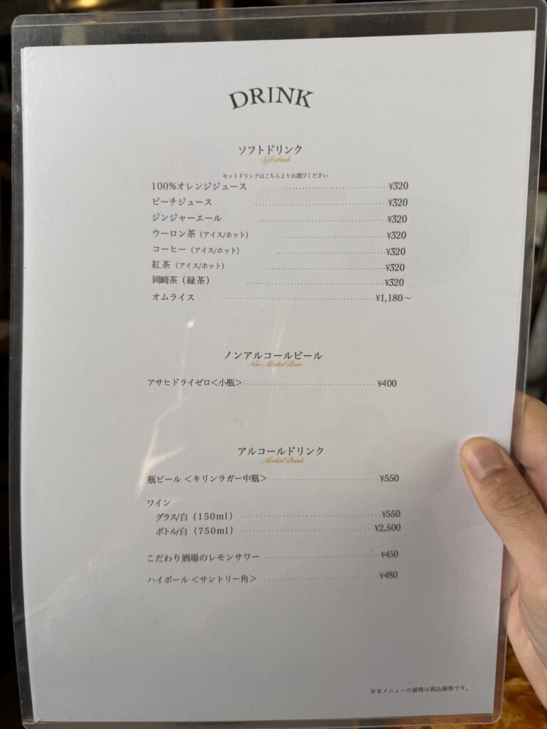 ドリンクメニューはこちらになります。