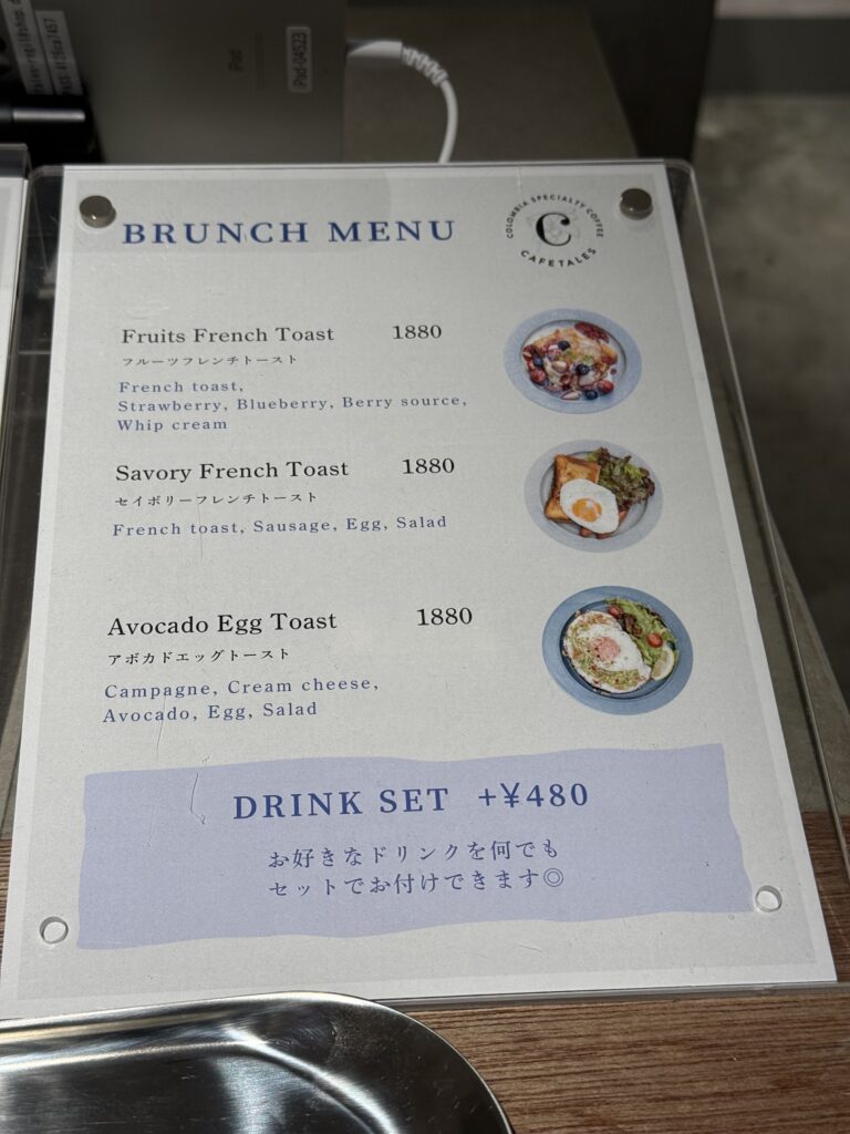 ブランチメニューはフルーツフレンチトースト、セイボリーフレンチトーストさらにアボカドエッグトースト。