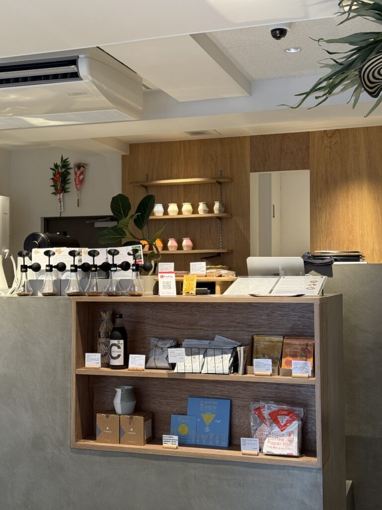 コーヒーを淹れる様子が見られるカウンター席や使い勝手の良いテーブル席がありました。
