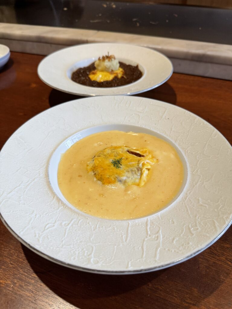 濃厚なホワイトソースにモッツァレラ、パルミジャーノレッジャーノ、カマンベール、チェダーの4種類のチーズを合わせたソースがかかっている期間限定オムライス。