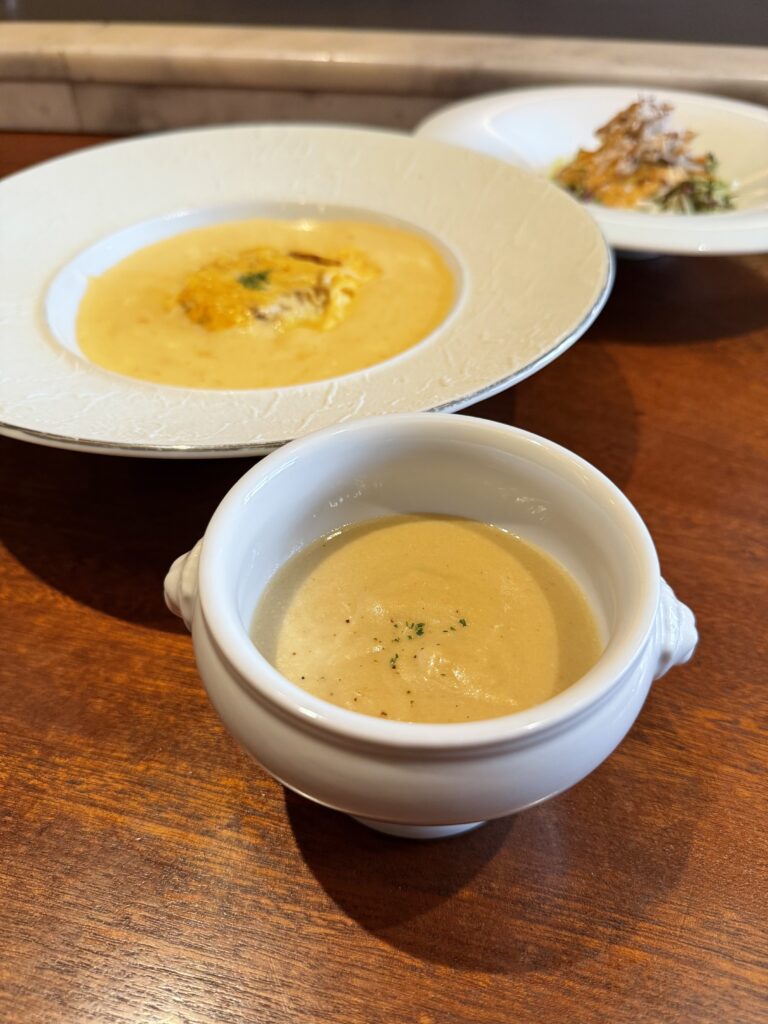 彩り鮮やかなサラダ、体温まるスープもついているのは嬉しいですね。